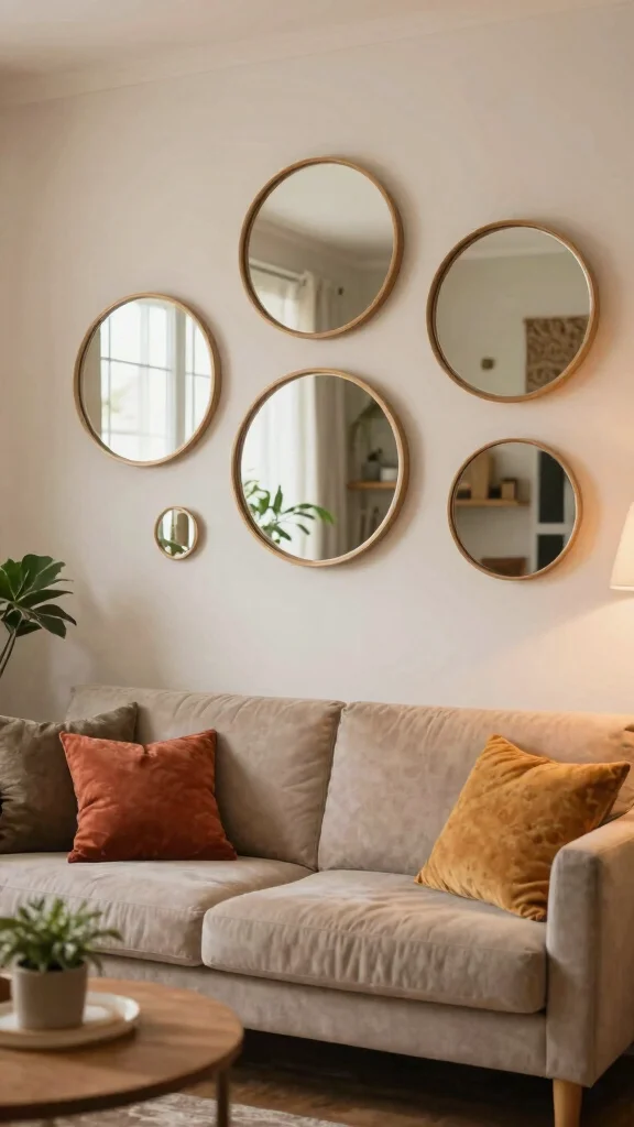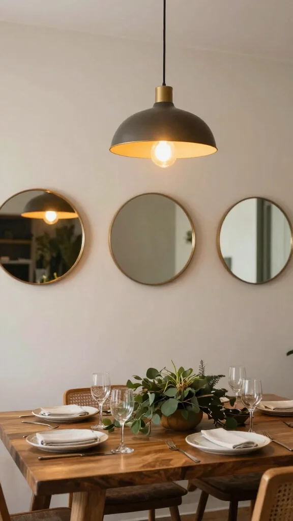 Fun fact: lighting above can boost room ambiance by up to 25% when paired with 3 circle mirrors on wall ideas. A bold pendant or unique wall sconce creates warm reflections, making the space feel taller and more curated.