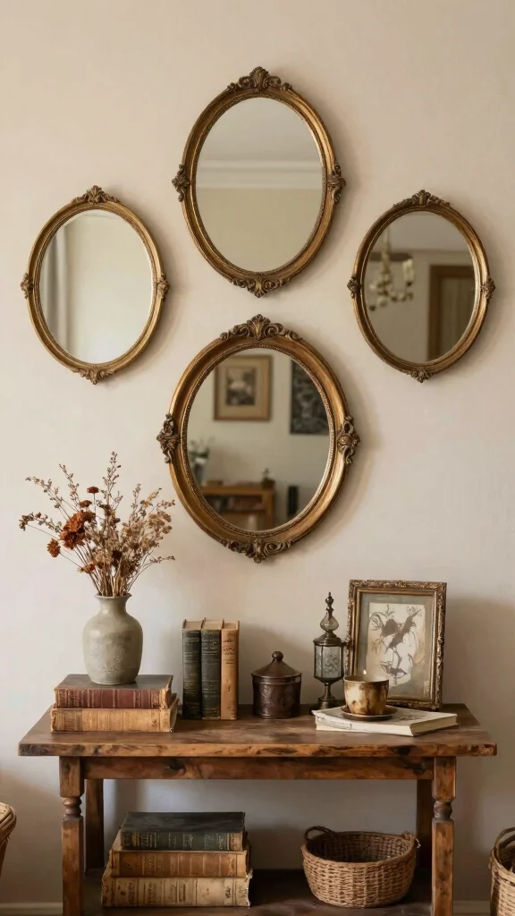 Incorporating vintage mirrors into your decor infuses a sense of history and charm. Look for circle mirrors with ornate frames or artistic details that tell a story, adding character and becoming conversation starters in your space. These unique finds enrich your home’s aesthetic with a touch of nostalgia.