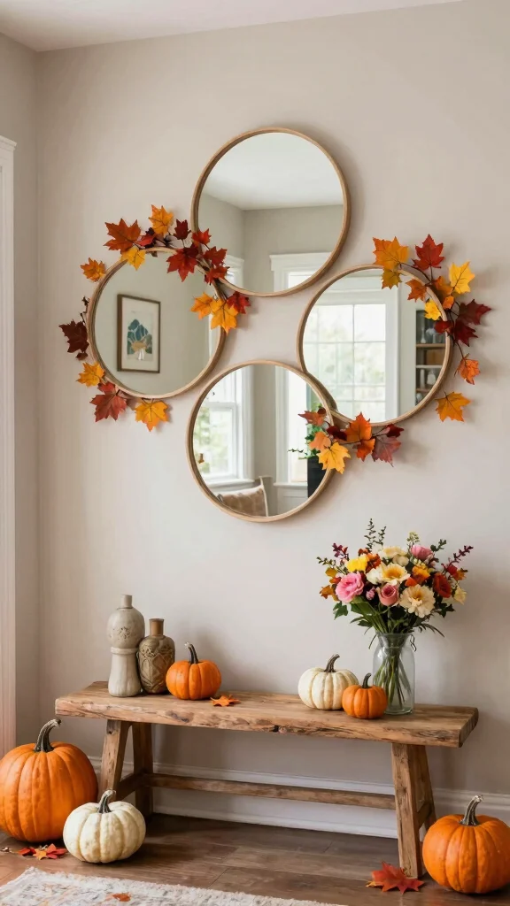 Celebrate the changing seasons with three round mirrors that can adapt to your decor! Simply switch out the surrounding decor to reflect seasonal themes—think autumn leaves or spring flowers for a vibrant display.