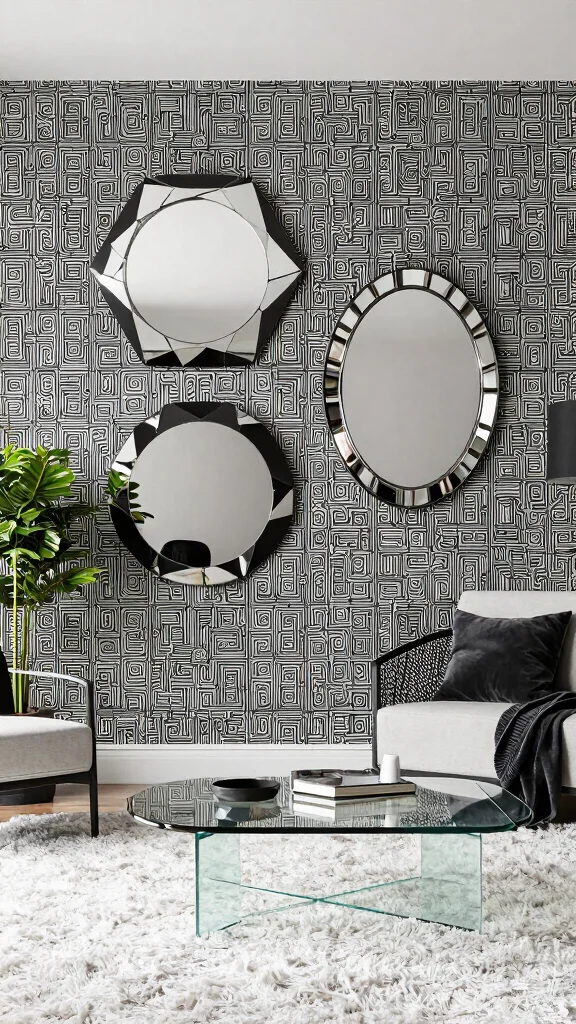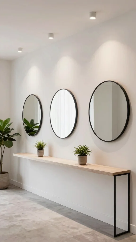 If you’re a fan of modern aesthetics, geometric arrangements of mirrors can elevate your design game. Setting three round mirrors against a wallpaper featuring geometric patterns creates a striking focal point that draws the eye. This contrast not only enhances the beauty of each mirror but also highlights the wallpaper’s design.