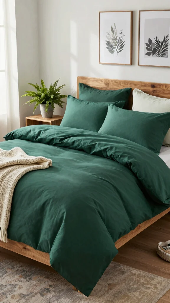 Embracing the elegance of forest green bedding sets can transform your bedroom into a sophisticated haven. This deep, rich hue draws inspiration from nature, evoking a sense of tranquility that makes it perfect for a restful retreat. Pairing forest green with warm wood accents and soft linens enhances the inviting atmosphere, creating a harmonious space that feels grounded yet stylish. Adding a lighter green knit throw and some nature-themed artwork can elevate the overall aesthetic, promoting relaxation and comfort throughout the room.
