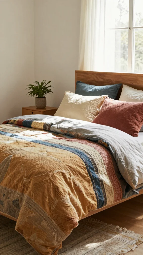 Choose fabrics with natural textures like linen and organic cotton, and layer with wood or rattan accents for a true nature-inspired bedding vibe in your cozy bedroom decor.
