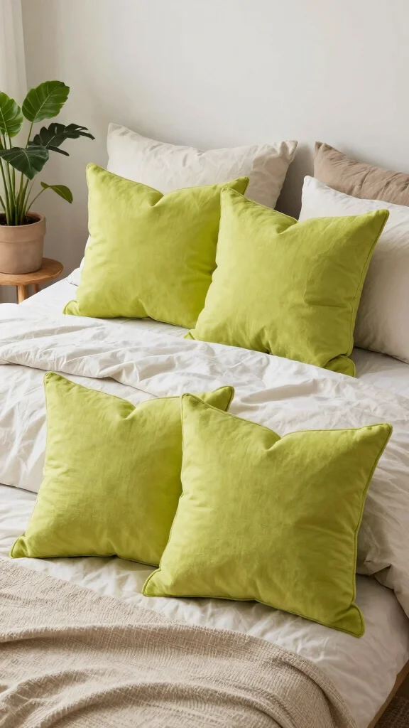Chartreuse throw pillows can introduce a vibrant burst of color that enlivens any bedding arrangement. This lively green-yellow shade adds a playful touch, bringing energy to your cozy bedroom. Pair these bold pillows with neutral or soft patterns to create a balanced look that doesn’t overwhelm.