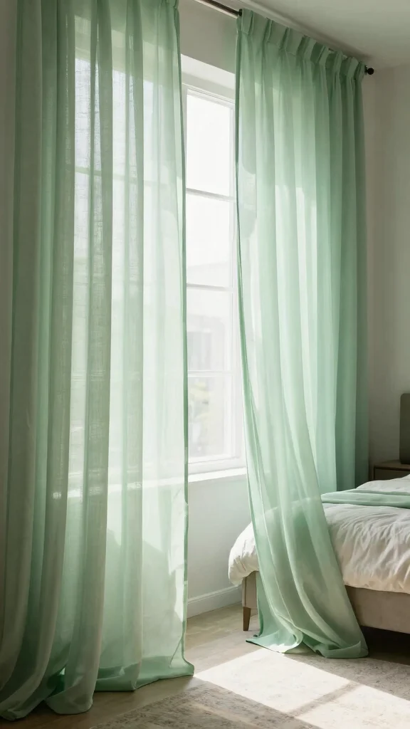 13. Light Green Sheer Curtains