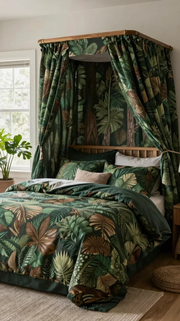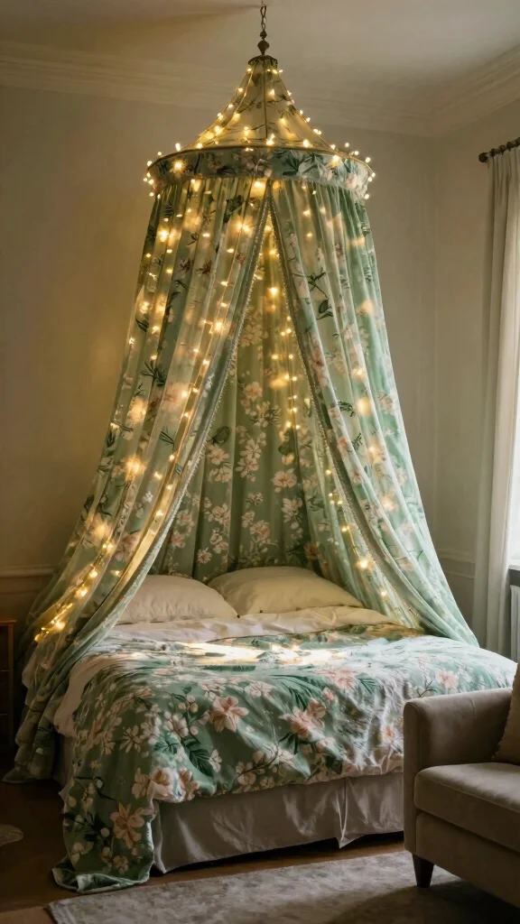 For a whimsical and romantic touch, consider green floral bed canopies that frame your bed beautifully. These canopies provide an enchanting nook that feels serene and inviting. Selecting lightweight fabric with soft floral patterns in green hues adds a dreamy quality to your decor.