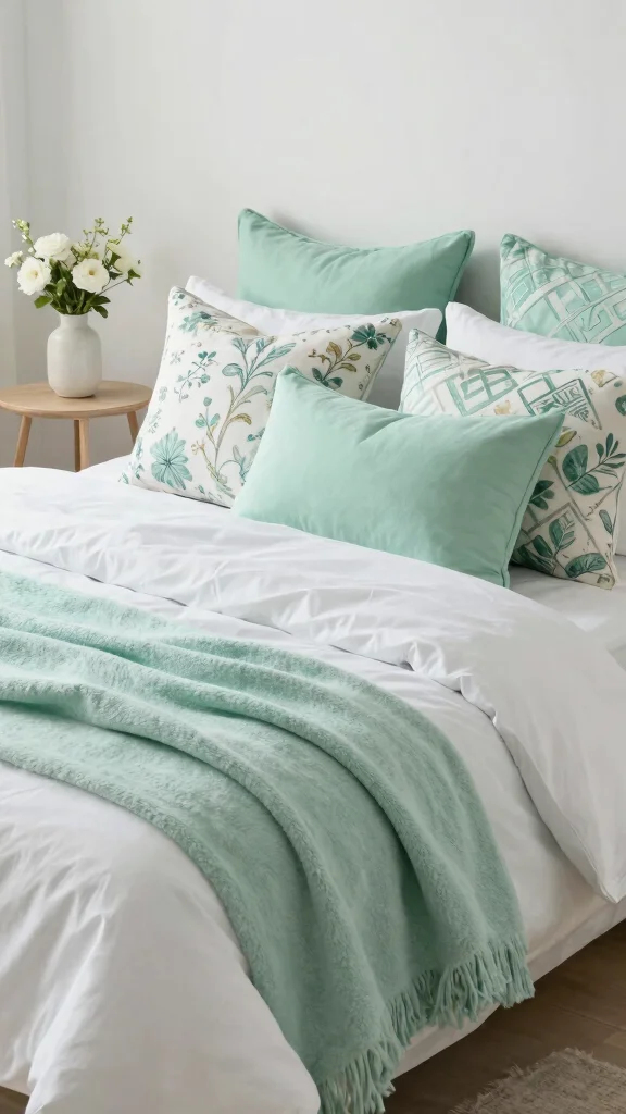 – Pair mint pillows with white or beige bedding