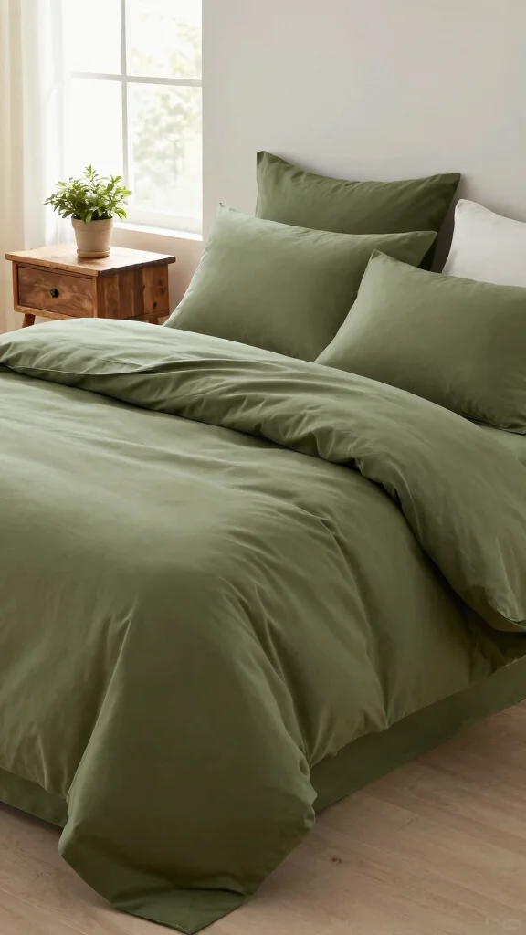 8. Olive Green Bed Linens