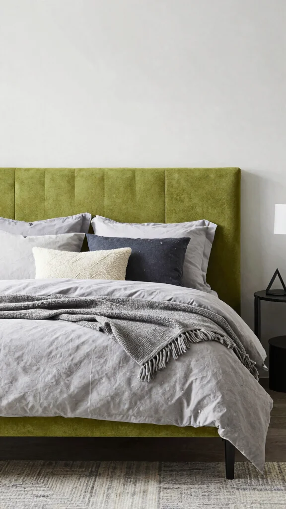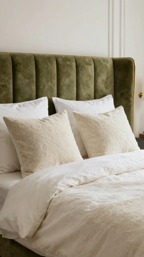 Elevate your bedroom with an elegant olive green headboard that radiates sophistication. Pair this rich hue with luxurious bedding in creamy whites or soft grays to create a refined and inviting atmosphere. Look for bedding made from silky fabrics to enhance the overall elegance while maintaining comfort. Accentuate the design with metallic touches, such as brass or gold decor, to elevate the sophisticated look. This style is perfect for those who desire an upscale ambiance without sacrificing coziness.
