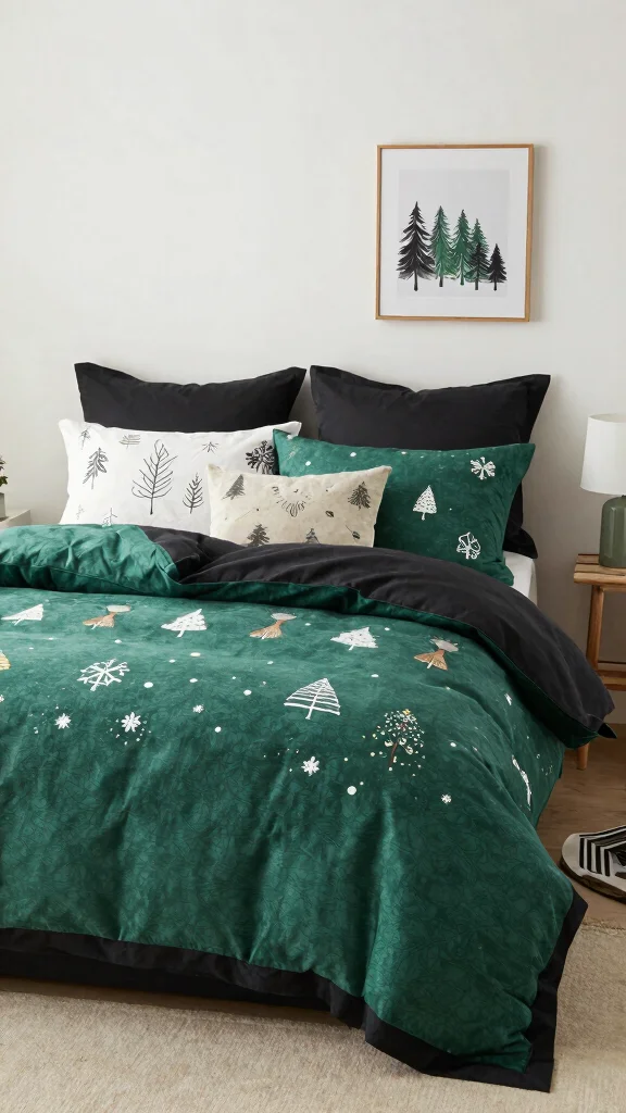 Infuse your bedroom with seasonal flair using black and green bedding that reflects the changing seasons. Choose designs that incorporate seasonal motifs—think leafy patterns for summer or rich jewel tones for fall. This dynamic approach allows you to refresh your space effortlessly, keeping your decor feeling relevant. When styling, pair seasonal bedding with complementary decorations like throw pillows or artwork.