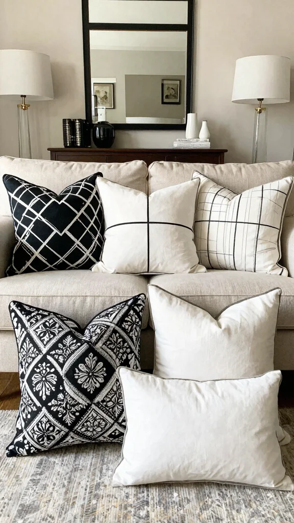 Pro Tip: Mix and match pillows to create depth and interest. You can combine various sizes, materials, and patterns to enhance the overall look of your space. Just ensure that they share a common color palette, like black and white, to maintain cohesion.