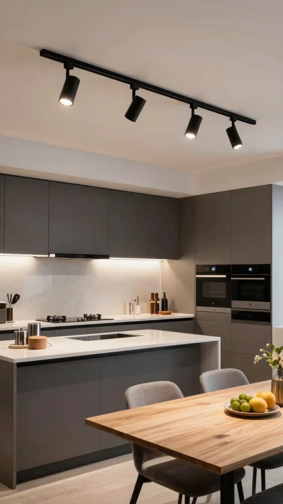 Using symmetry in your fixture placement can further enhance the minimalist vibe, creating a harmonious and sleek kitchen environment.