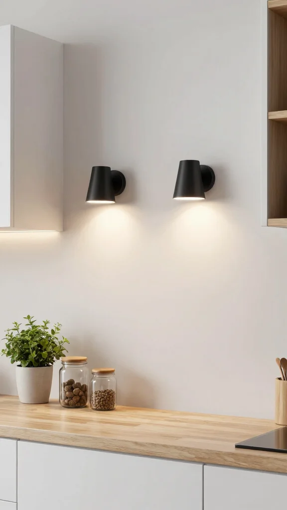 Sleek black sconces present an elegant solution for enhancing your kitchen’s lighting while adding a touch of style. These fixtures can illuminate walls, highlight artwork, or accentuate architectural features, creating a warm ambiance. Adjustable sconces allow you to direct light precisely where it’s needed, making them perfect for various tasks or cozy settings.