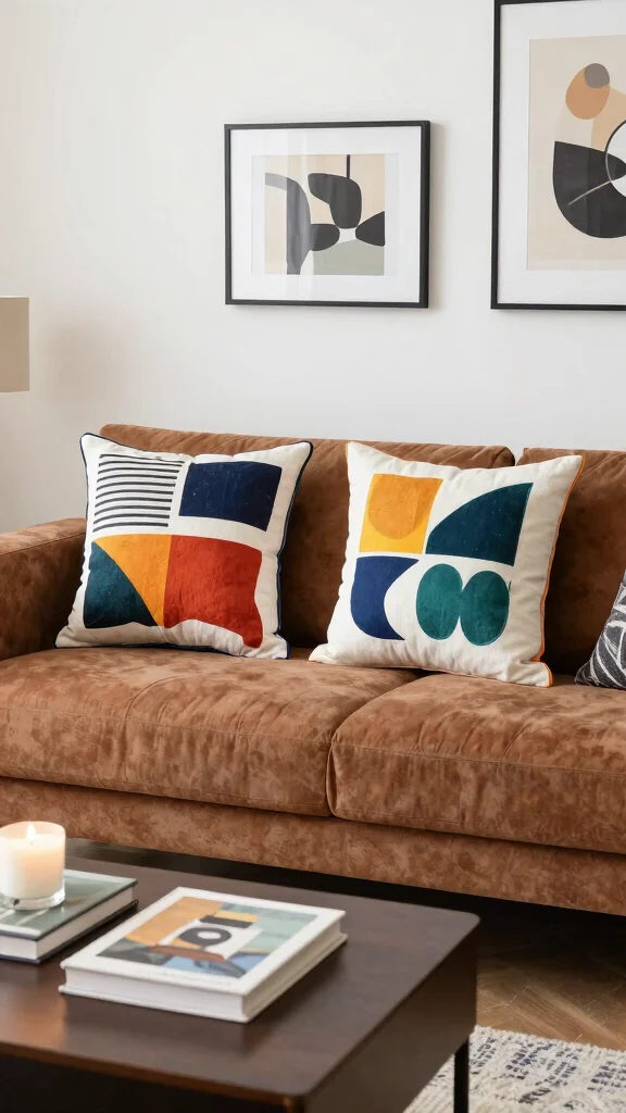 Graphic design pillows can add a modern and edgy touch to your brown couch. Featuring bold illustrations or typography, these pillows serve as statement pieces that express your unique style. They can effortlessly transform your living space, especially for those who appreciate contemporary art and design.Incorporate graphic pillows by using one or two as focal points amidst softer accents. Select colors that harmonize with your overall decor theme for a cohesive look.Explore these considerations for your decor: