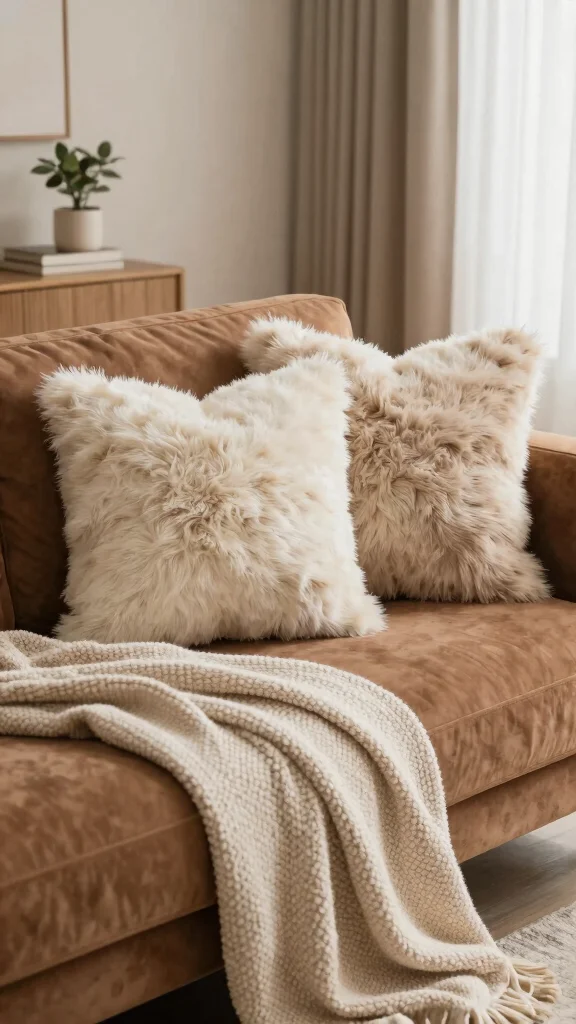 Fun fact: Faux fur pillows can boost perceived warmth by up to 25%, helping you keep the thermostat lower. That eco-friendly touch on your brown couch adds luxe texture without sacrificing comfort.
