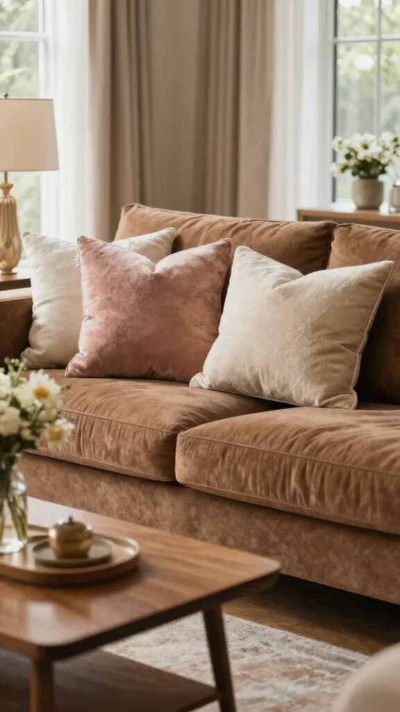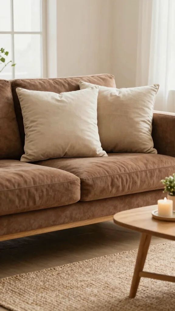 Seasonal decorative pillows provide an easy way to refresh your brown couch for different times of the year. Whether you opt for warm oranges and browns in autumn or pastel hues in spring, these pillows can embody the spirit of each season. This allows you to continuously update your decor without a significant financial investment.For styling, maintain a few versatile base pillows and rotate seasonal designs around them. Select colors and patterns that reflect the current season’s vibe for a cohesive look throughout your home.Consider these tips for maximizing your seasonal decor: