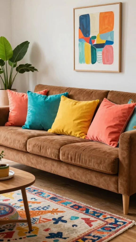 Add a burst of energy to your brown couch setup with color-pop pillows! These vibrant accents can transform your living room, creating an eye-catching focal point that invigorates the space. Bright colors like yellows, teals, and rich reds provide an exciting contrast, enhancing the overall aesthetic.Using colorful pillows is a fun way to introduce seasonal decor shifts without overhauling your entire space. Pair them with neutral or muted pillows to strike a balance that feels lively yet harmonious.Consider these styling tips: