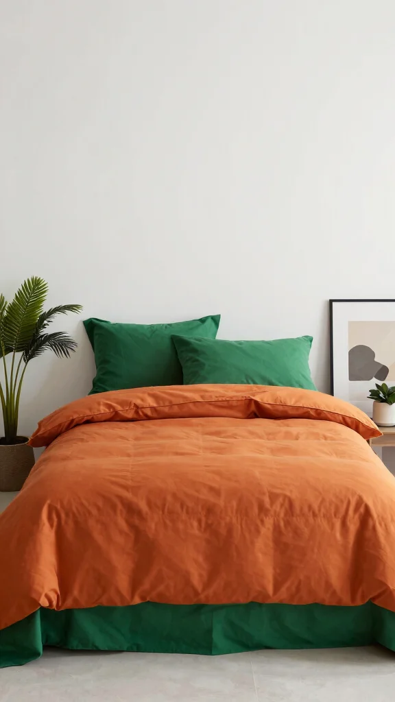 Sometimes less is more, especially in a bohemian bedroom. Adopting a minimalist approach with your burnt orange and green bedding allows the colors to shine without overwhelming the space. Select a bold burnt orange duvet and pair it with solid green sheets for a striking yet simple appearance.