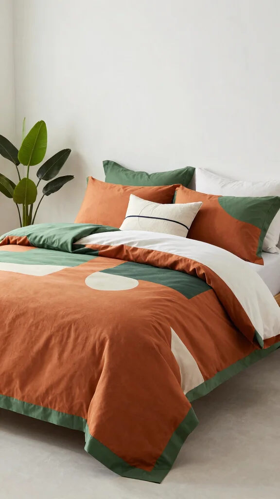 Mix geometric bedding with softer solid-colored pillows to balance the firmness of the patterns. This contemporary approach can be elevated with metallic accessories and sleek furniture, creating a chic atmosphere.