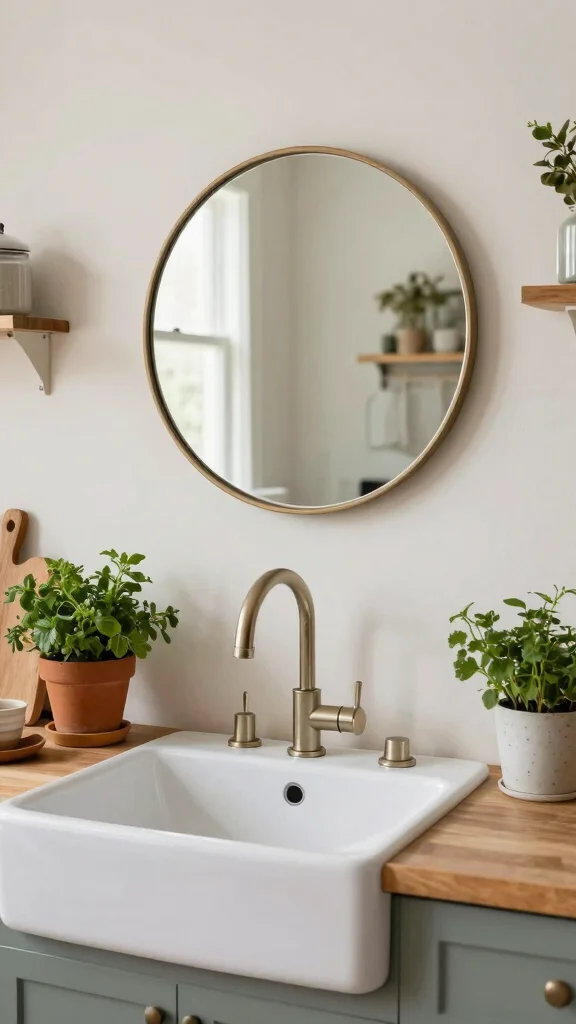 Don’t hesitate to place circle mirrors in unexpected areas of your home! Using them in spaces like the kitchen or bathroom can introduce a touch of elegance to typically utilitarian areas. They serve not only as decorative pieces but also as functional elements.
