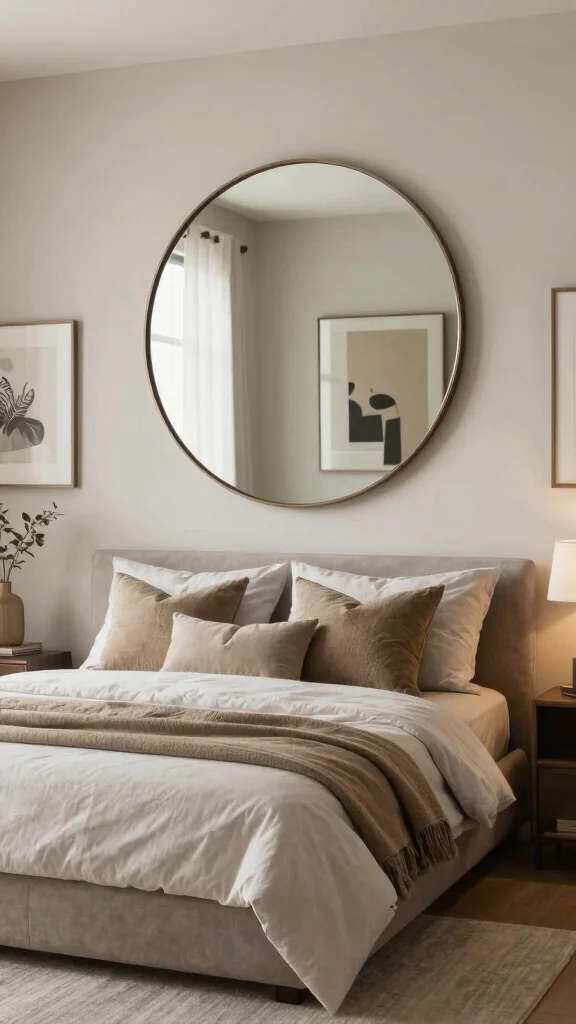 Consider using circle mirrors as chic accents on side tables. Mirrored surfaces can inject glamour and elegance into any room, serving both as decor and a practical surface. Place them next to a sofa or bed to create a warm and inviting atmosphere.
