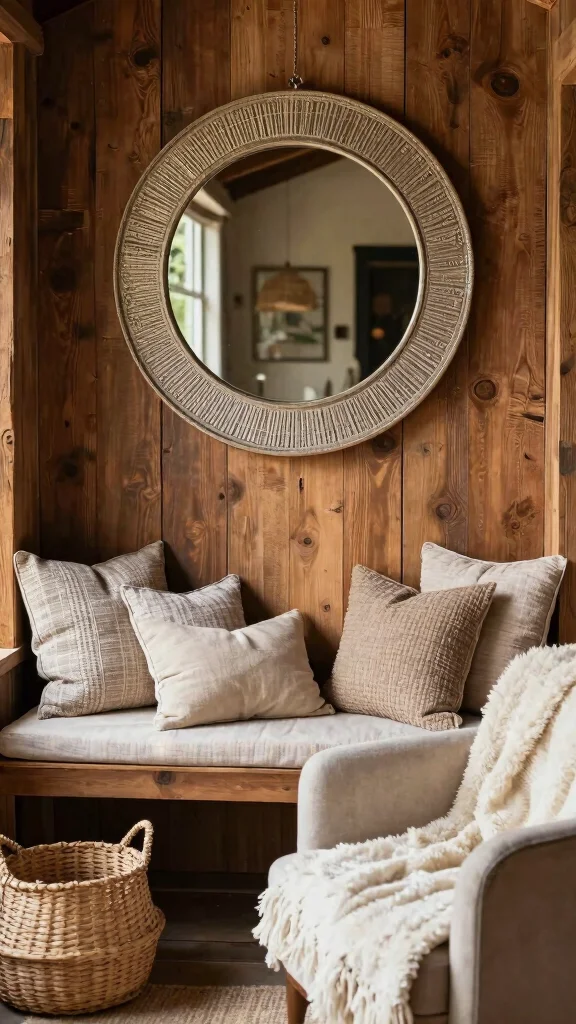 – Combine natural wood furniture with sleek metal mirrors for balance.
