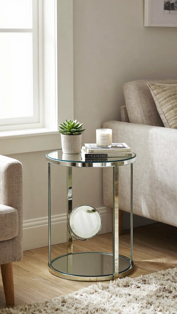 Incorporating mirrored side tables elevates your decor while also serving a functional purpose in living rooms or bedrooms.