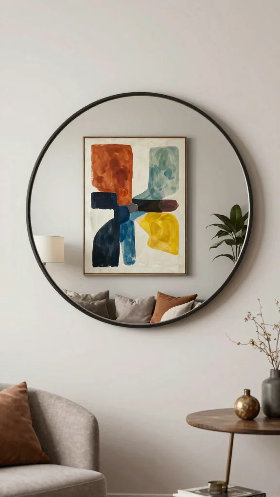 Utilizing circle mirrors to reflect artwork creates an engaging visual experience in any setting. Position the mirror to capture a favorite art piece, effectively creating a framed view that attracts attention. This method not only enhances your artwork but also adds dimension to your walls.