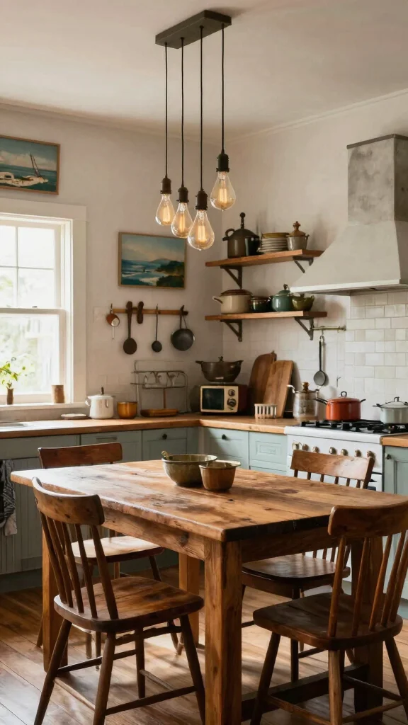 Vintage industrial fixtures cater to those who appreciate both rustic charm and modern elegance, creating a layered aesthetic in your kitchen.
