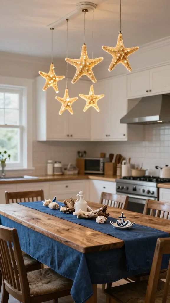Celebrate the seaside beauty with coastal starfish lights. These whimsical fixtures feature starfish shapes combined with soft lighting, adding a unique charm to your kitchen. Perfect for accentuating dining areas or kitchen islands, they embody a playful spirit.