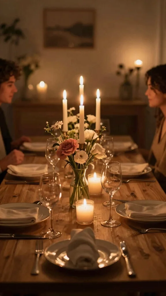 Incorporate candle-lit fixtures for a romantic, cozy atmosphere while maintaining an eco-conscious approach to lighting.