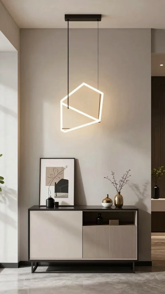 Fun fact: Geometric lighting fixtures blend bold forms with sustainable materials, boosting energy efficiency—LED modules can cut lighting costs by up to 25% in eco-friendly homes. Paired with minimalist decor, these cohesive lighting fixtures become a focal point in any entryway or living room.