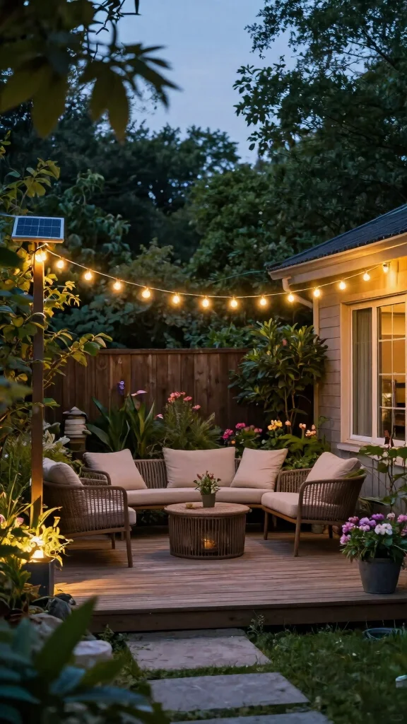 Install solar-powered outdoor lights to illuminate your garden sustainably while reducing electricity costs.