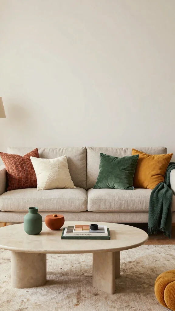 To enhance this palette, consider mixing pillows with different textures, which adds dimension and interest. You can also source budget-friendly options from local artisans or craft fairs to enrich your decor.