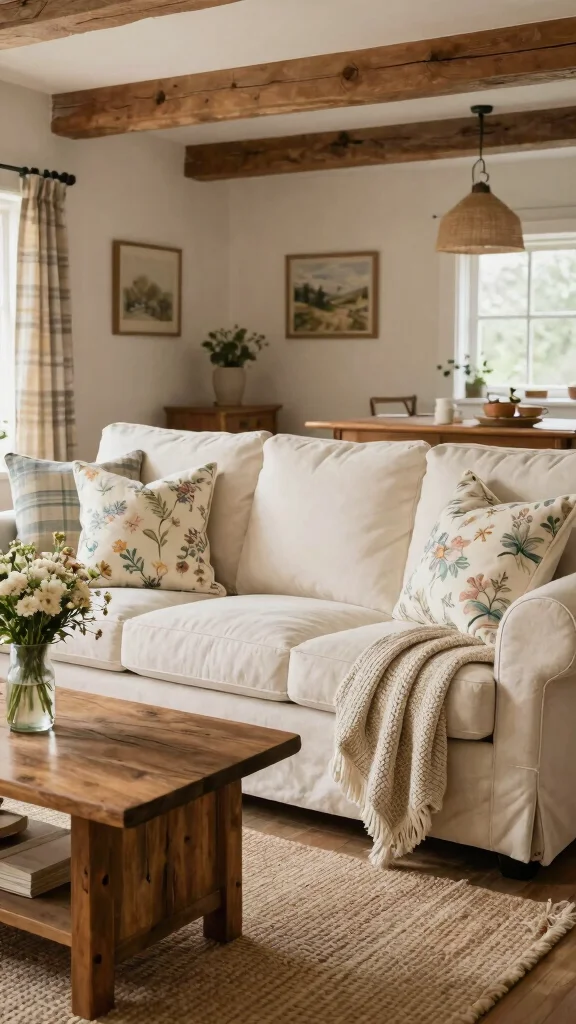 The cottage style fosters a relaxing environment, perfect for curling up with a book or enjoying quality time with loved ones.