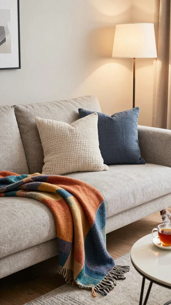 To create this layered look, choose throws that harmonize with your pillow colors. You can find affordable options at local home goods stores or online retailers.