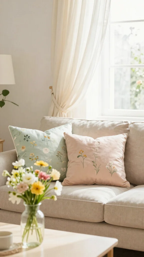 Switching out your throw pillows with the seasons keeps your living room feeling fresh and inviting. In spring, choose soft pastels and floral patterns; in summer, opt for bright, cheerful colors. Fall is perfect for warm oranges and browns, while winter calls for cozy flannels and jewel tones. This simple change allows you to celebrate each season through your decor.