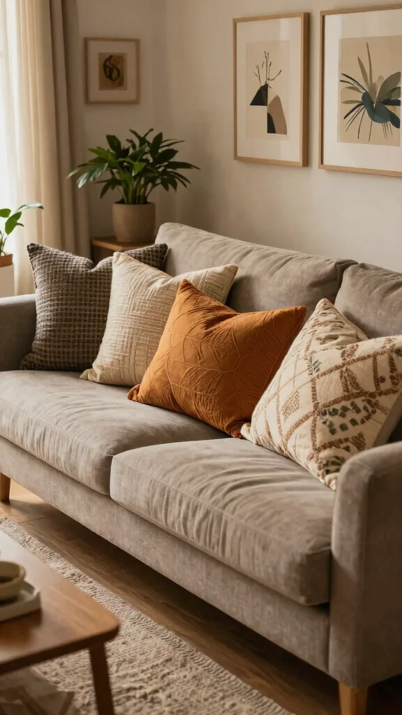 Fun fact: textured neutrals can calm a space by layering linen, knit, and soft velvet. This approach boosts depth without overpowering your couch decor ideas throw pillows. Mix fabrics and sizes to create a cozy, cohesive look—even on a budget with local thrift finds.