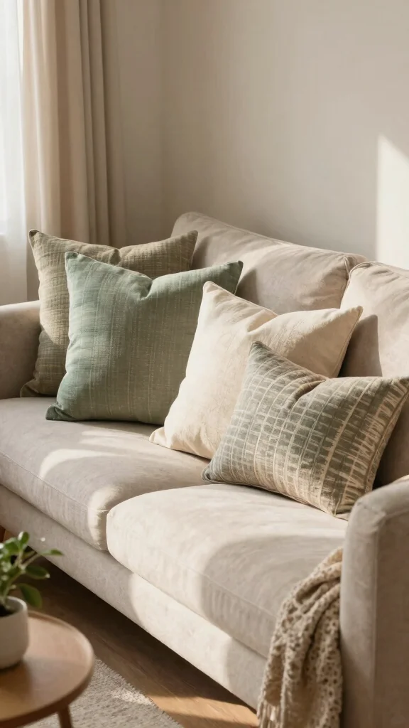 Use monochromatic pillows to maintain a serene vibe, or experiment with geometric patterns for a modern twist. Pair minimalist pillows with light-colored sofas to create a cohesive look and stick to a limited color palette to keep the space feeling uncluttered.