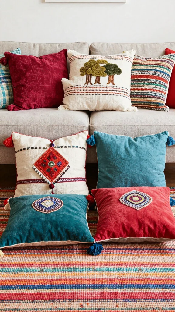 Add handwoven pillows to introduce unique textures and support artisan craftsmanship in home decor.