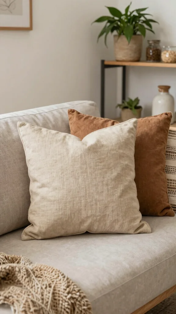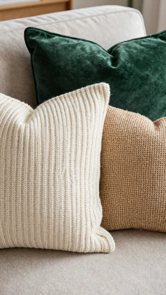 Creating a cozy vibe on your couch starts with mixing textures. Imagine chunky knit pillows paired with smooth velvet and natural jute cushions. This blend creates visual interest and tactile comfort, making your sofa a warm retreat. Think about how the textures play off each other, especially if your living room has a neutral backdrop. For instance, rich, textured pillows can become eye-catching focal points that enhance the overall warmth of your space.