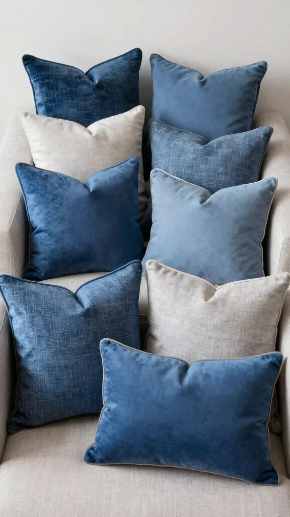 Alternate sizes (22×22, 20×20, 18×18) and mix textures like cotton, linen, velvet, and crochet.