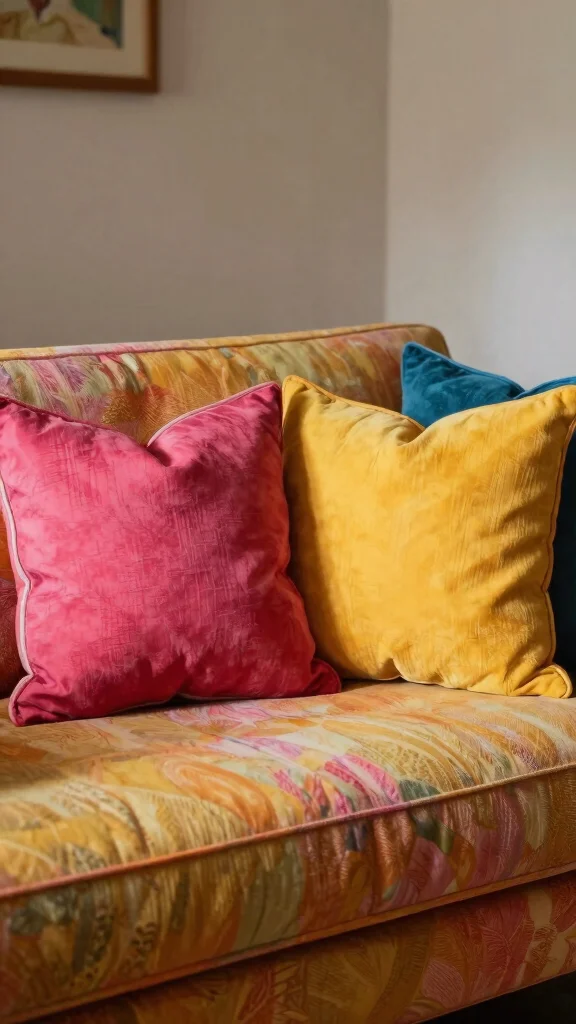 To implement this earthy theme, mix and match pillows while keeping a cohesive color scheme. You can find budget-friendly options at local markets or online retailers. Additionally, balancing bold colors with neutral tones in your couch or surrounding decor can enhance the overall aesthetic.