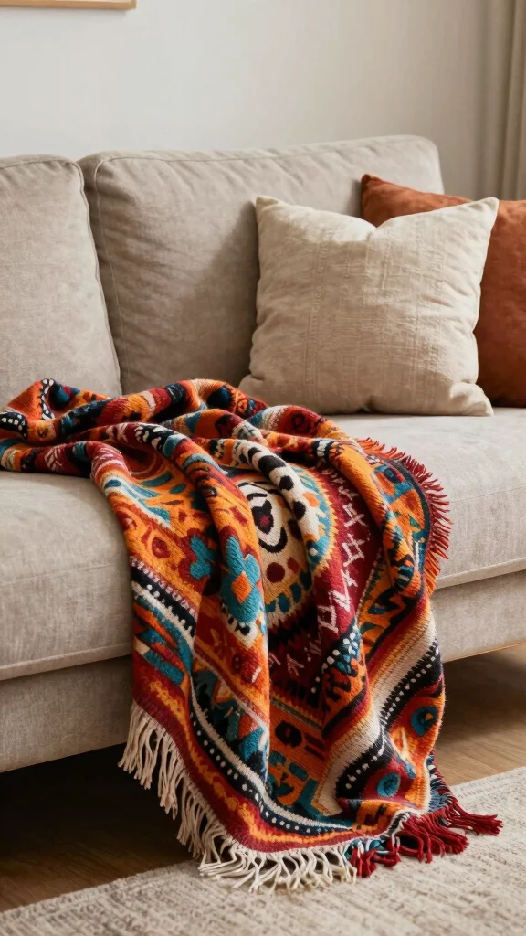Casually draping a throw across one arm of the couch or neatly folding it at the end adds an inviting touch. Consider incorporating patterned throws to enhance the bohemian vibe and create a layered look. You can find affordable options at local stores or online.
