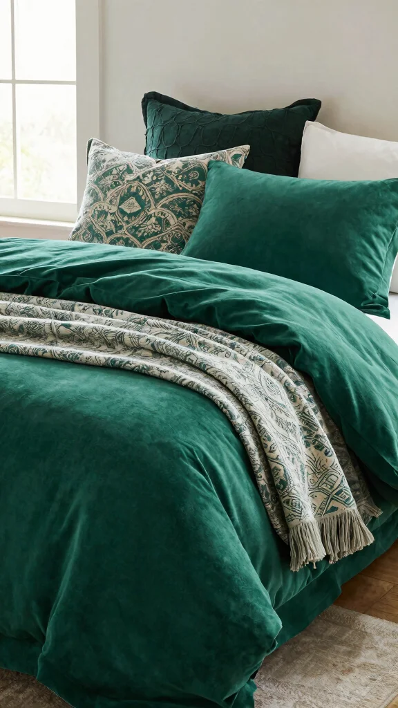 Creating a bedding setup with mixed textures in emerald green can beautifully showcase your style while ensuring comfort.