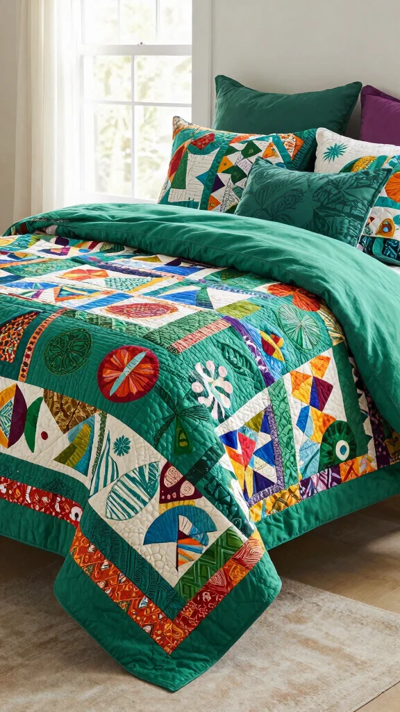Artistic printed quilts in emerald green can provide warmth and inspire creativity in your personal space.