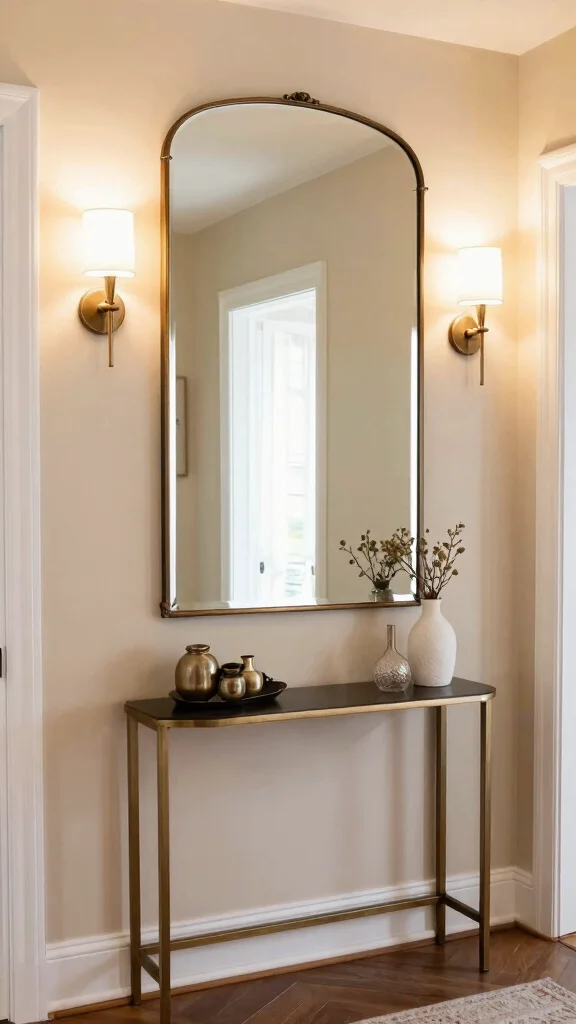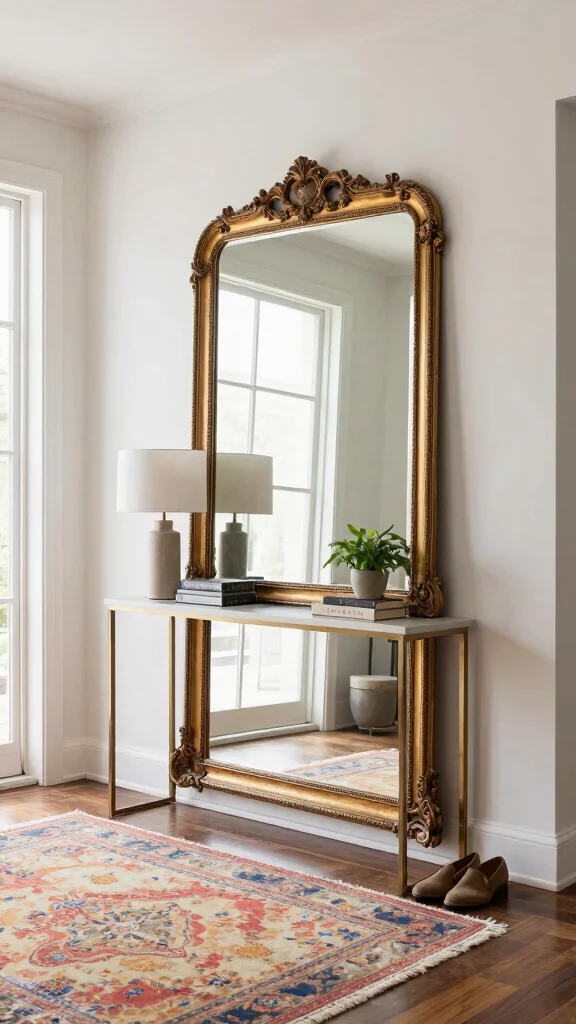 To maximize this effect, think about how you style the space around the mirror. Budget-friendly options like thrifted tables or fresh flowers can add a personal touch without breaking the bank.