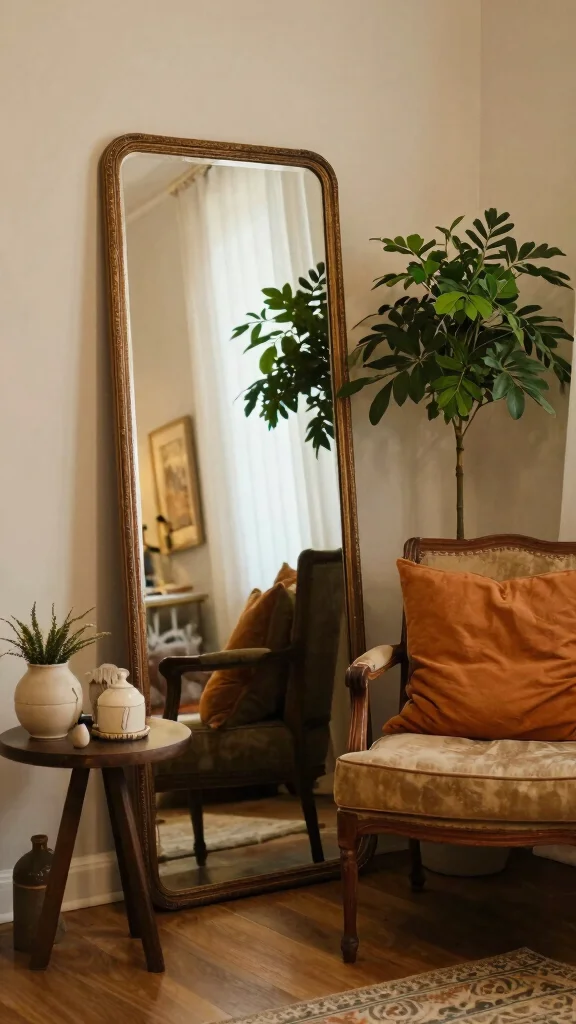 Finally, use oversized mirrors as a backdrop for seasonal decor updates. Vintage mirrors can frame seasonal arrangements or holiday decorations, creating visually stunning displays that celebrate the changing seasons.