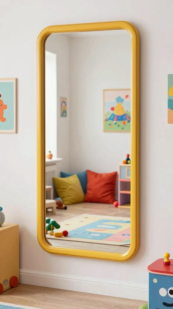 Add a whimsical touch to your child’s play area with oversized mirrors that serve a practical function. Vintage-style mirrors can inspire creativity and playfulness, making the playroom more engaging.