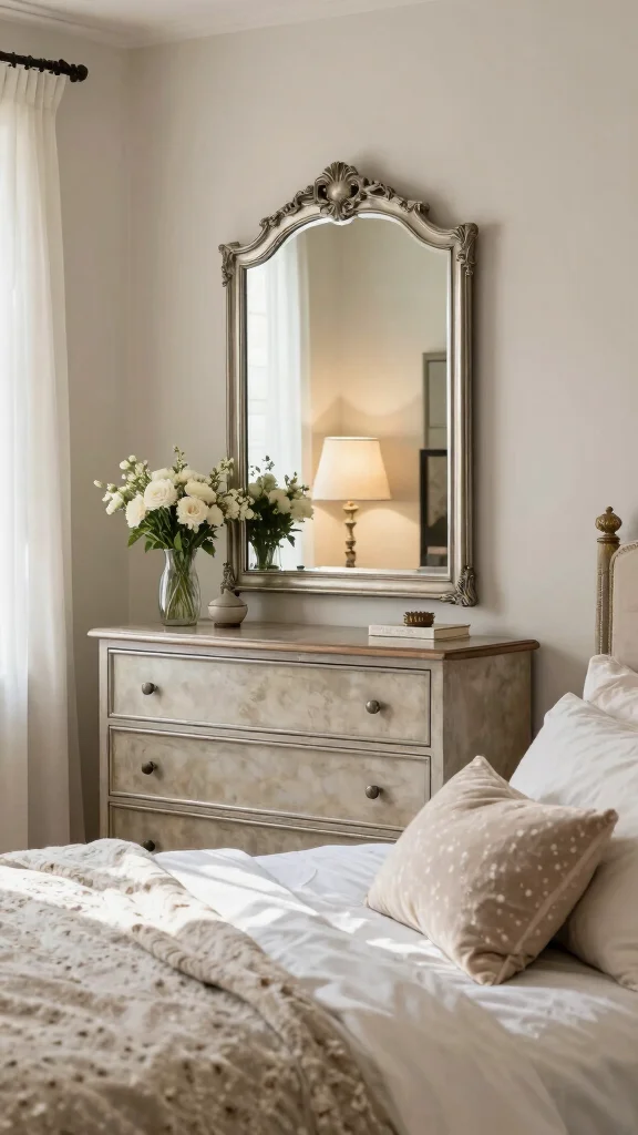 Incorporate an oversized wall mirror into your bedroom for a touch of glamour and practical use. A vintage-style mirror not only serves as a decorative accent but also allows you to check your outfits effortlessly. Select designs that resonate with your personal style, whether ornate or minimalist.