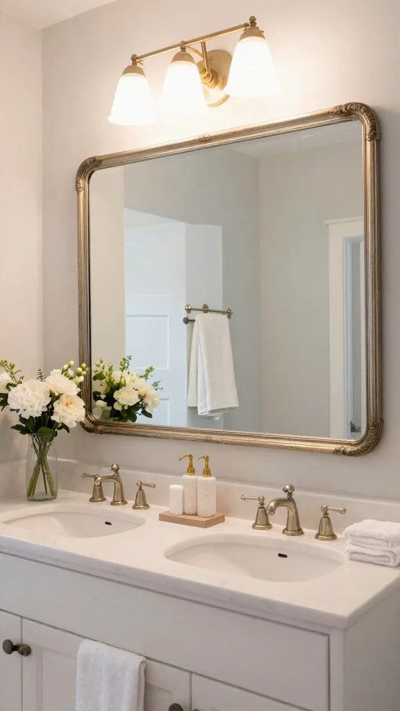 Add an oversized wall mirror to your bathroom for a touch of vintage elegance that can transform the space. It creates an illusion of more room while adding a luxurious feel, especially with ornate or simple frames that complement your existing decor.